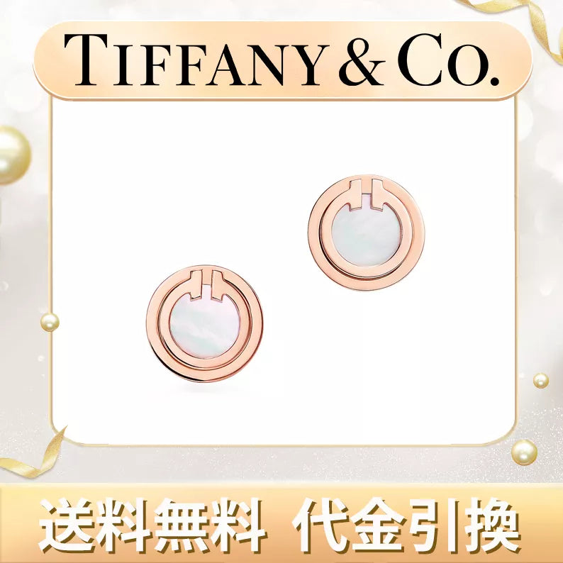 T トゥー マザーオブパール サークル ピアス 18K ローズゴールド