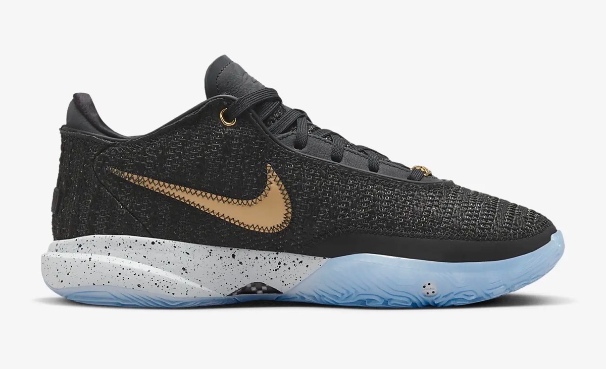 「Nike(ナイキ)」の新作バスケットボールシューズ〈LeBron 20 EP “Black/Metallic Gold”(レブロン20 EP “ブラック/メタリックゴールド”)〉が、国内2023年4月6日(木)より発売予定。今回登場する新作では、アッパーをブラックカラーのニット素材で構築。サイドにあしらわれたメタリックゴールドのスウッシュロゴと、ヒールに配されたLJのクレストが頂点の輝きを表現している