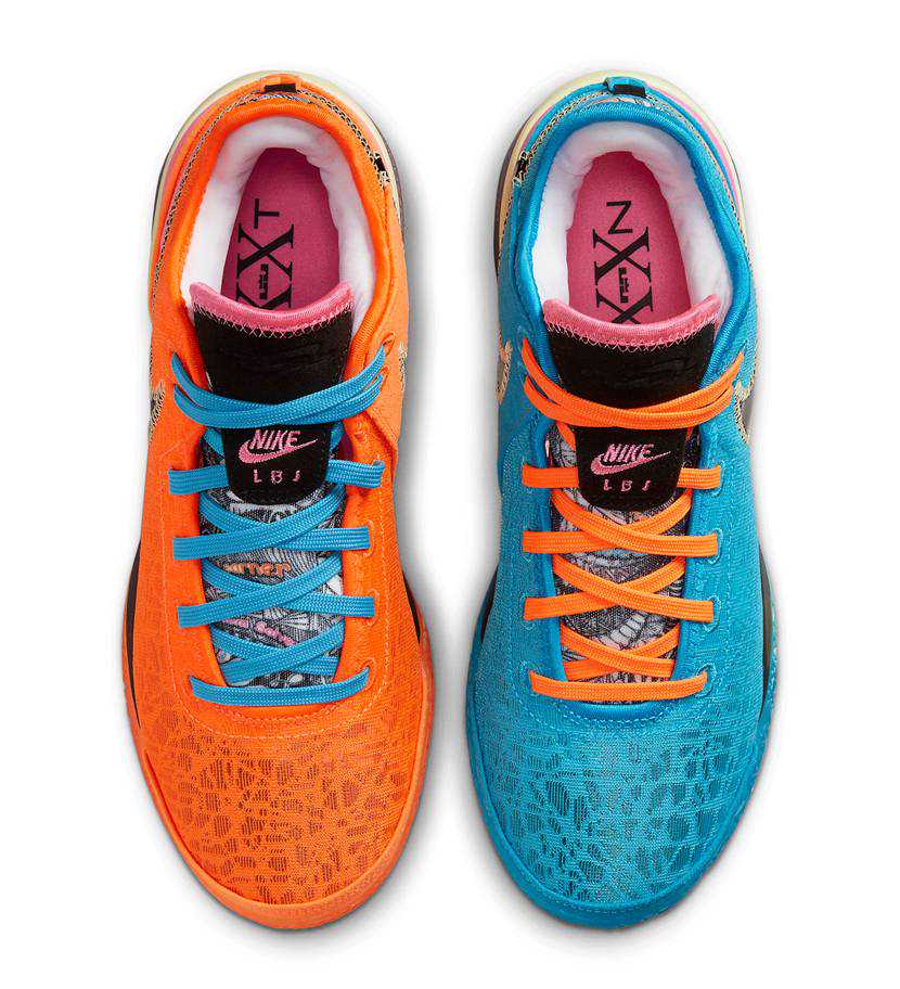 今回リークされたモデルは、強烈な個性を放つ左右非対称のカラーリングが特徴的だ。モデル名にもなっている「NXXT」は、「NEXT」と20を表すローマ数字の「XX」を組み合わせた文字であり、2023年にNBA20シーズン目を迎えるジェームズのことを表現しているようだ。また、左右それぞれブルーとオレンジという対照的な配色が施され、ミスマッチなビジュアルが魅力的な一足に仕上がった